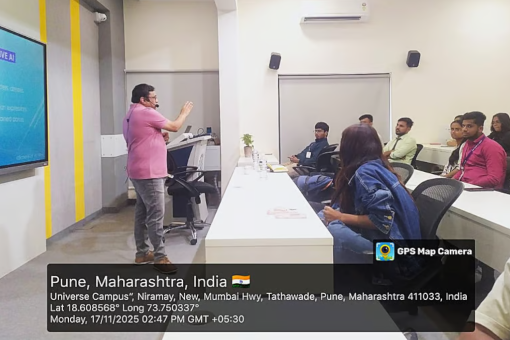 On 17th November, had an engaging session on AI Filmmaking and introduced the vision and learning model of the School of AI Films (SAIF) at the School of Liberal Arts, Indira University, Pune. The audience—around 60–70 students along with faculty members—responded with curiosity and enthusiasm as we explored the evolving intersection of storytelling, cinema, and next-generation AI tools. The session highlighted how AI is reshaping creative processes and how SAIF prepares students for this fast-emerging landscape. The interaction was warm, energetic, and greatly appreciated by the participants.